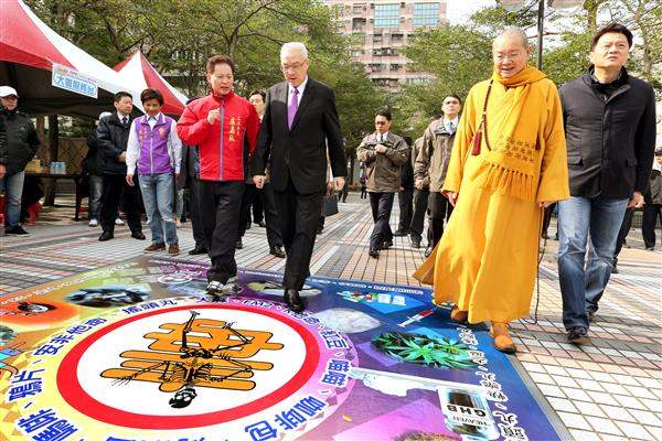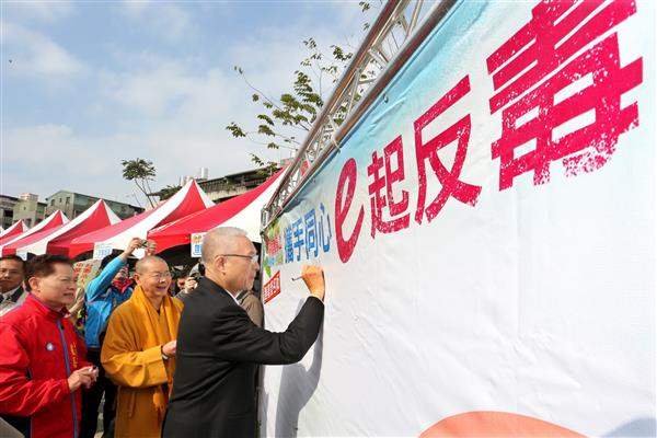 吳敦義副總統今(9)日上午出席由「淨化社會文教基金會」及「中華王爺慈善會」主辦的「箏愛傳承2」親子反毒園遊會,呼籲國人「攜手同心 E起反毒」。