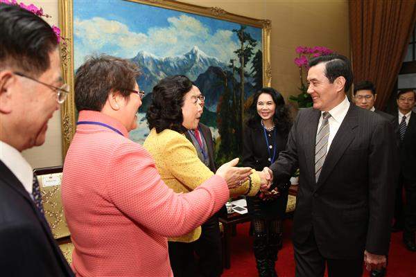 馬英九總統今(19)日下午接見「香港國際華商協進會」參訪團,除說明近年兩岸關係朝向良性循環發展,促使臺港關係更加密切,並強調政府努力在國際上扮演「和平締造者」與「人道援助提供者」的角色,打造臺灣成為「受人尊敬、讓人感動」的國家。