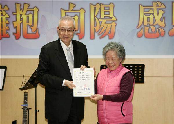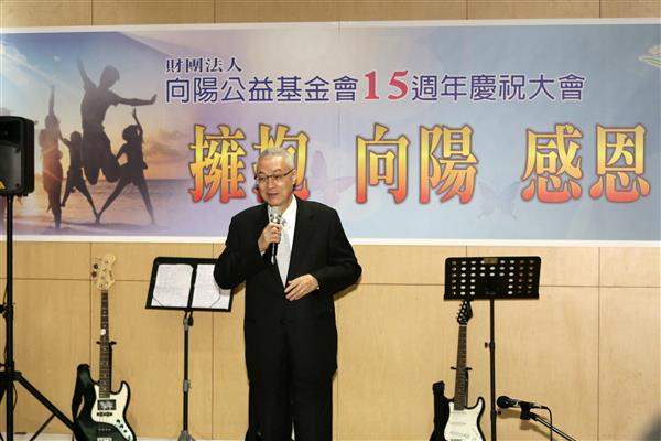 吳敦義副總統今(24)日下午出席「財團法人向陽公益基金會」十五周年慶祝大會,頒發感謝狀予主要捐助人,並期勉渠等繼續對社會弱勢者做出貢獻,成為社會向陽與向上的力量,讓臺灣社會更和諧與美好。