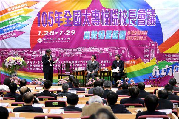 馬英九總統今(29)日下午前往國立暨南國際大學出席105年「全國大專院校校長會議」,肯定與會教育界人士集思廣益,共同擘劃更完善的高等教育轉型政策。