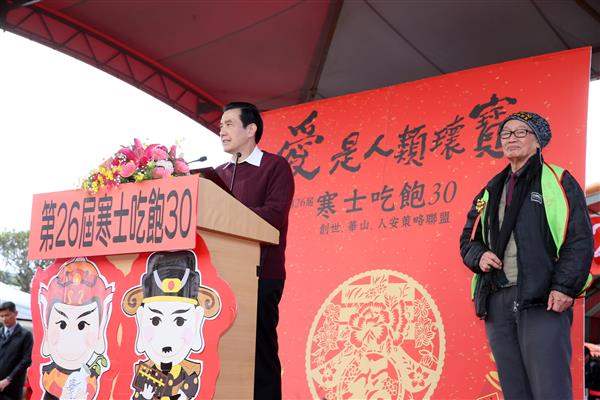馬英九總統今(31)日中午偕同吳敦義副總統出席第26屆「寒士吃飽30愛心尾牙」活動,盼政府與國人及民間團體共同努力,以實際行動照顧弱勢族群,讓社會處處充滿溫暖,人人共享祥和溫馨。