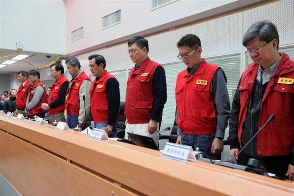 在聽取搜索救援、傷患收治、交通運輸、災民收容安置及支援調度等各項救災工作最新進度後,總統除發表談話,也率同中央災害應變中心所有工作同仁為地震罹難者默哀致意。