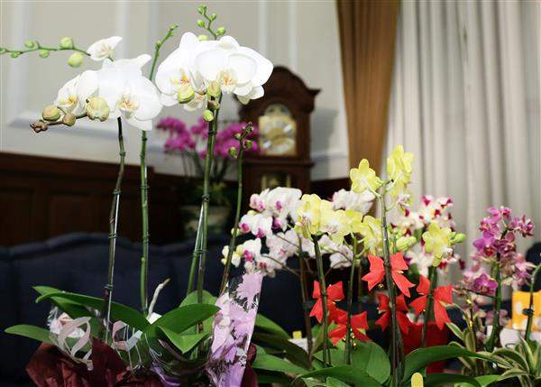 訪賓一行由臺灣蘭花育種者協會理事長賴本智率領,行政院農業委員會副主任委員沙志一陪同,前來總統府晉見總統,總統府副秘書長熊光華也在座。