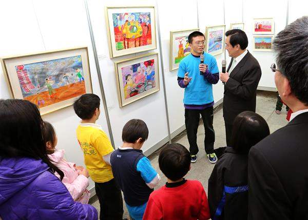 隨後,總統至總統府藝廊參觀畫展,在作畫學員導覽解說後,總統表示,繪畫本身就是反映心靈狀態的活動,他藉由畫作瞭解小朋友們的內心世界,不僅充實了心靈,也看到學員們的自信與活力。