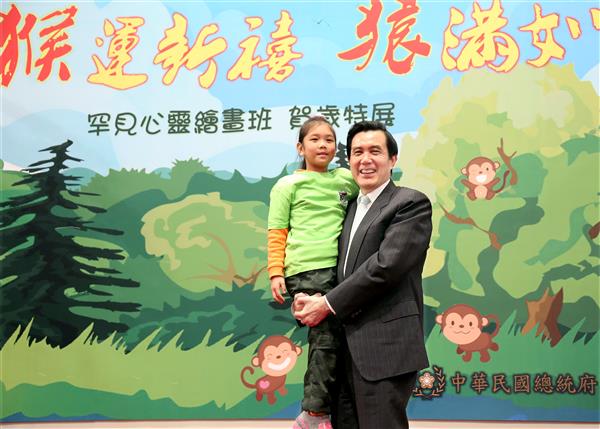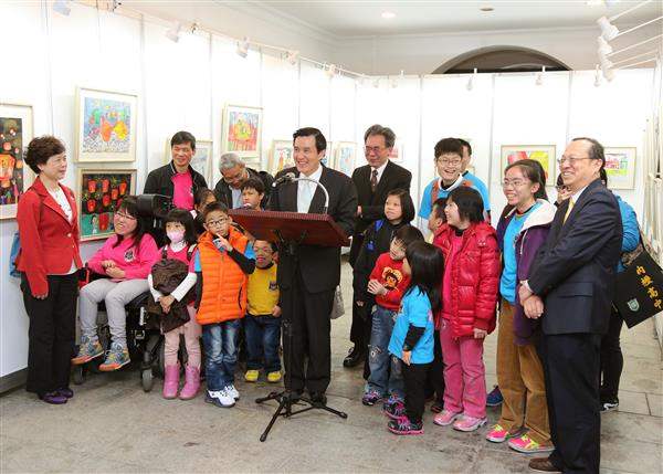 馬英九總統今(19)日下午出席在總統府舉辦的「罕見疾病基金會繪畫班」畫展開幕式,以具體行動肯定罕病孩童透過畫筆揮灑自己對生命的想像,並向訪賓說明我國落實罕病防治及病友照護的具體措施與成效。