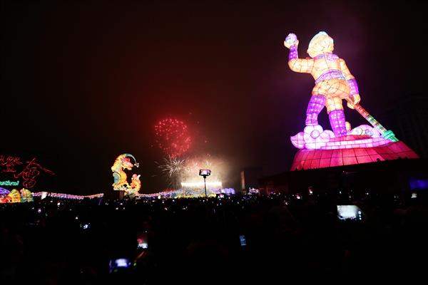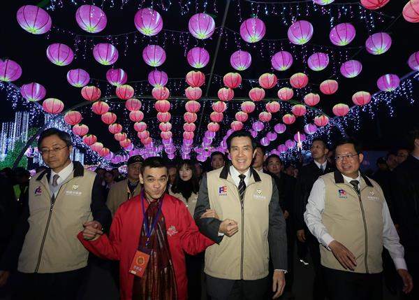 馬英九總統今(22)日晚間出席在桃園市舉辦的「2016臺灣燈會」,在現場民眾的倒數聲中,與行政院長張善政及桃園市長鄭文燦一起為燈會主燈「齊天創鴻運」點燈,瞬間繽紛光束與燦爛煙火照亮夜空,為本年燈會揭開序幕。