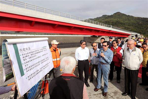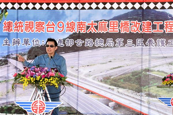 馬英九總統今(5)日上午偕同副總統吳敦義前往臺東縣視察鐵公路南太麻里橋改建工程成果,除肯定所有行政團隊的努力與付出,讓該工程順利完工通車,並期許後續進行的各項交通建設都能如期如質完工,達成台9線南迴公路拓寬改善後續計畫全線通車的目標。