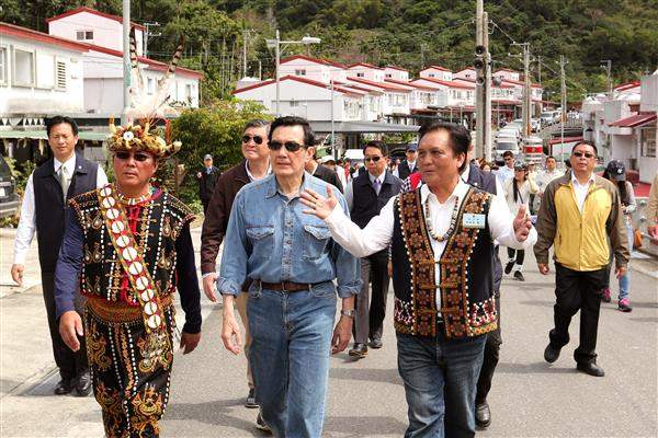馬英九總統今(5)日上午偕同吳敦義副總統前往臺東縣金峰鄉視察「嘉蘭天空步道」與防落石整修工程,及訪視嘉蘭村在地產業重建情形,午間並與嘉蘭村永久屋居民午餐,親自體驗部落建築之美與所代表的文化意涵。
