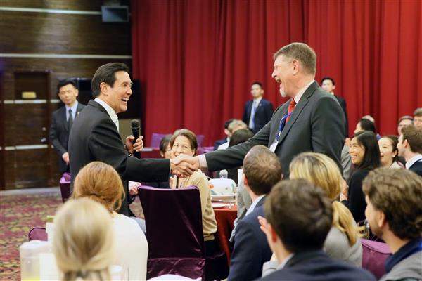 稍後,在學術交流基金會執行長李沃奇(William Vocke)主持下,總統與現場學人針對國內少子化而影響我生產力、兩岸經貿關係以及我國在國際社會上的貢獻等議題進行問答交流。