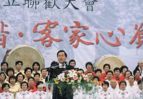 延續著這個政策思考,當本人就任總統之後,就請行政院加速籌設,而很順利地於今年六月十四日正式成立了「行政院客家委員會」。客委會的成立,使得客家文化的發展、族群文化的平等,成為國家的政策與責任,意義至為重大。原住民委員會和客家委員會的先後成立,都在宣告,台灣是多元文化體制的民主國家,我們相信,這也是世界少見的。