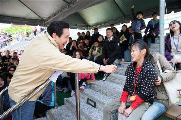 兒童節將屆,馬英九總統今(26)日上午前往臺北市兒童新樂園出席「歡樂童心園」兒童節活動,與現場大小朋友同歡、進行有獎徵答,並說明我國推廣《兒童權利公約》及落實兒少權益保障的具體作為與成果。