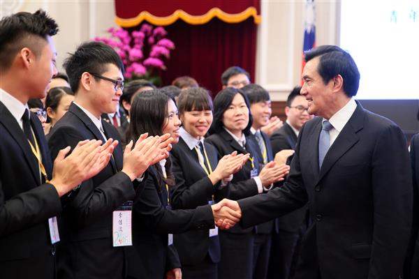 馬英九總統今(29)日下午接見105年「青年獎章」得獎人、社會及大專優秀青年代表,肯定得獎青年朋友們的出色表現,並說明政府推動青年參政、鼓勵學子從事志工服務及營造友善青年創業環境之相關作為與成果。