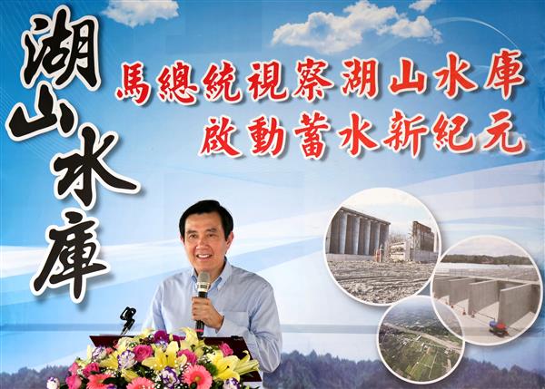 總統表示,「湖山水庫工程計畫」雖於民國90年由行政院核定,但實際上政府早於民國68年時即著手規劃。因為用地協調及八色鳥生態保育等因素,計畫經歷相當長的時間,總算取得多方共識,於民國95年開始正式動工。期間又因為許多原因而使工期延宕了3次,可謂「好事多磨」。而施工團隊及所有同仁在動植物保育、移植及棲地營造等自然生態保育措施方面均投注相當多的心力,減少對環境造成的衝擊,殊值肯定。