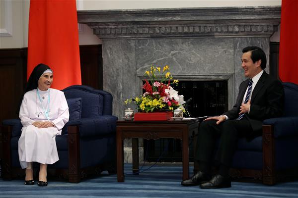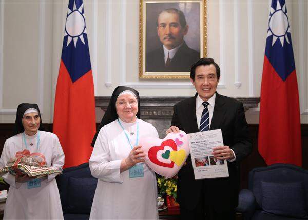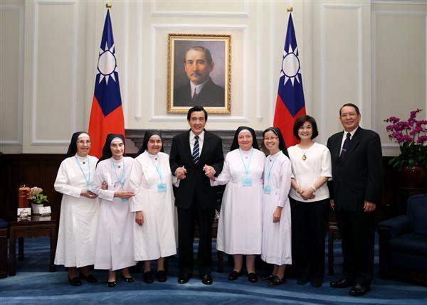 馬英九總統今(8)日下午接見新竹縣尖石鄉耶穌肋傷會義大利籍趙秀容修女一行,除肯定渠長期行善、關懷弱勢及照顧偏鄉孩童的用心與付出,並說明政府致力改善偏鄉教育及落實幼兒教育的作為與成果。