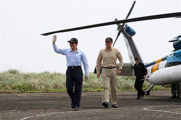 馬英九總統今(9)日午間搭乘直昇機訪視彭佳嶼,為「和平東海 國疆永固」紀念碑揭碑,並發表重要談話,說明釣魚臺列嶼與我北方三島在地理與歷史上的關係,亦重申政府致力推動區域和平及打造「三海和平」之努力與決心。