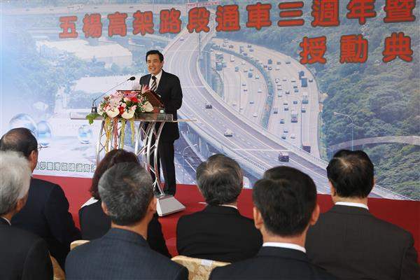 總統指出,五楊高架拓寬工程在南北雙向各達40公里,並在既有高速公路兩側狹窄的路權內進行施工,工程實為艱困。然工作團隊靠著周詳的規劃設計與執行技術,包括採用基本設計發包、徵用預鑄場地、用地徵收設定地上權、大量採用自動化工法及雙層鋼橋設計等方式,並以非常審慎的態度要求施工品質,僅在短短4年的時間內,就完成五股到楊梅路段間的高架拓寬工程,從動工到啟用都在他一半的任期內完成。