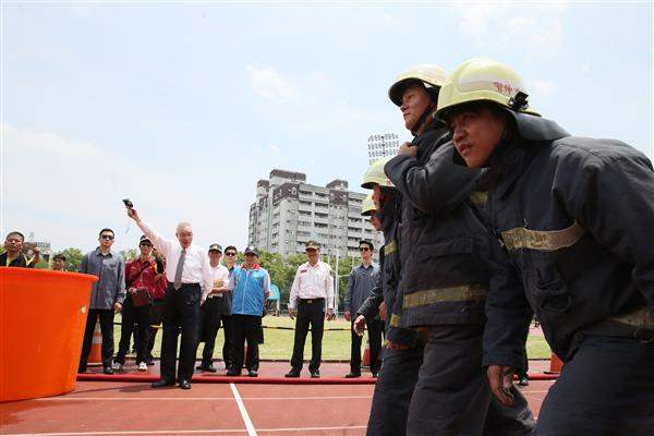 隨後,副總統前往南投縣立體育場出席該縣105年全民防災宣導暨消防民力競技大賽,親為「小幫浦射水」、「飛盤接力高手」及「心驚膽戰」等競賽鳴槍,以肯定該活動對宣導全民防災觀念的正面意義。