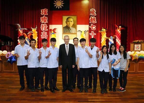 副總統首先出席「南投高中」70週年校慶,受到與會師生熱烈歡迎。副總統致詞時除盛讚該校拔河隊甫於荷蘭世界盃拔河錦標賽奪得四金二銀的空前佳績,也提及他民國70年擔任南投縣長期間,在教育、藝術與體育等縣政業務的推動上,承蒙南投高中的師生與校友提供諸多協助,讓他銘感在心。