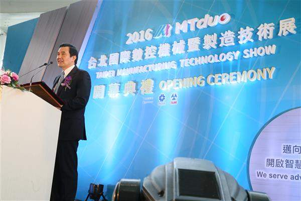 馬英九總統今(5)日上午出席2016年「臺北國際數控機械暨製造技術展」開幕典禮,除肯定該展覽成為全球智慧機械產業製造商與終端用戶之間的重要交流平臺,並說明政府近年來打造機械產業價值升級的努力與成果。