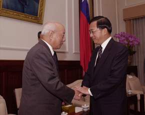 金中會長暨其他代表團團員上午是由國策顧問辜濓松、李在方陪同,前來總統府晉見總統。