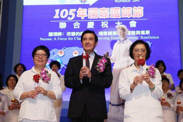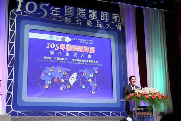 馬英九總統今(12)日下午出席「105年國際護師節聯合慶祝大會」,除肯定護理人員長期在醫療照護的努力與奉獻,並對「傑出護理人員專業貢獻獎暨服務奉獻獎」獲獎者表達恭賀之意。