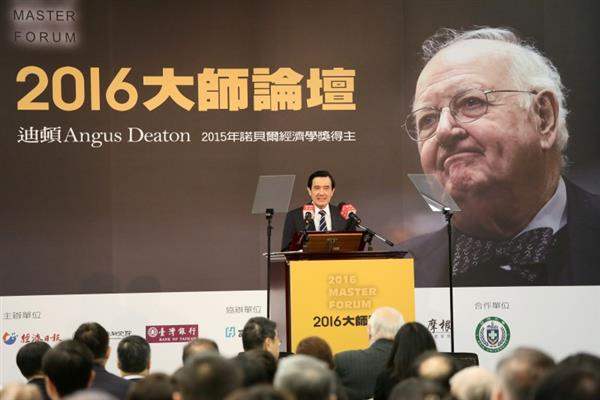 馬英九總統今(18)日上午前往臺北國際會議中心出席「2016大師論壇」,說明我政府在推動臺灣經濟轉型及建構社會公義之相關努力與成果。