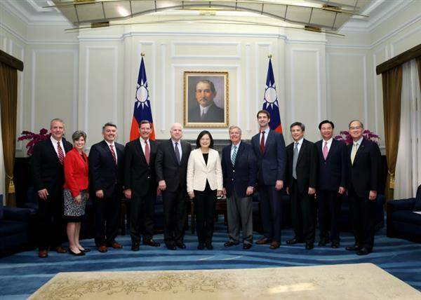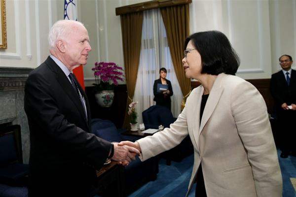 蔡英文總統今(5)日下午接見美國聯邦參議院軍事委員會馬侃(John McCain)主席訪問團,期盼訪賓能持續予臺灣堅定支持,未來臺美關係能持續深化、更上一層樓。