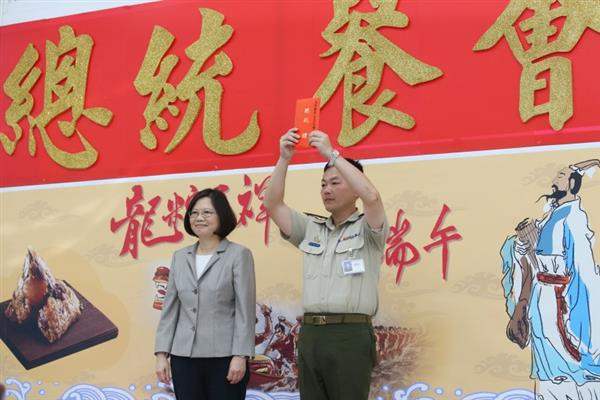隨後,總統頒發加菜金予部隊官兵,表示慰勉與肯定之意,並預祝官兵們端午節快樂。