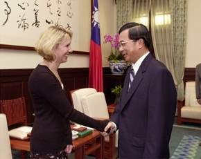 美國疾病管制局傳染病小組領導人麥隆妮醫師一行,上午由SARS行政院SARS防治及紓困委員會副召集人暨防治作戰中心總指揮李明亮陪同,前來總統府晉見總統,總統府副秘書長吳釗燮也在座。