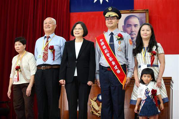總統首先表揚27位模範警察,並與得獎者及其眷屬合影留念。隨後總統致詞表示,今天是一年一度的警察節,對於警察同仁為了守護臺灣社會的安全,堅守崗位、盡忠職守,她要藉此專屬警察的節日,代表全體國民向所有警察同仁及其家屬表達誠摯謝忱。