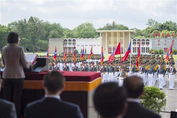 總統抵達先校閱陸、海、空軍軍官學校學生部隊,對地面部隊所展現未來國軍幹部的精實與自信,表達肯定之意。