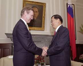 總統也告訴訪賓,我國已完成國防二法的立法,使台灣正式走上軍政、軍令一元化,這是我國國防改造必走的方向,而未來我國防部長也將如同美國由文人擔任。