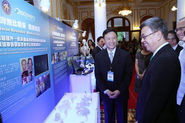 副總統抵達會場後,首先參觀醫療展示區,並觀賞「臺灣無比精彩:醫療精英」紀錄片精華片段。