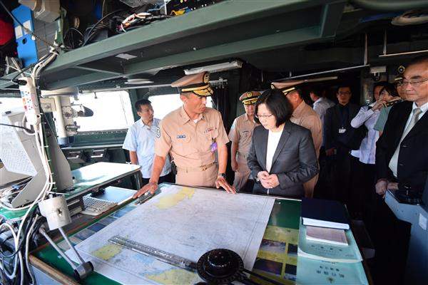 蔡英文總統今(13)日上午前往高雄左營視導海軍艦隊指揮部,總統除慰勉海軍官兵辛勞外,並登上即將前往南海巡弋的迪化艦,向艦上官兵發表談話。