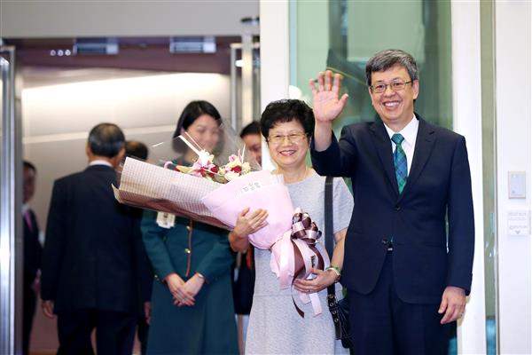 包括總統府秘書長林碧炤、外交部長李大維、駐華使節團秘書長聖露西亞大使艾曼紐(Hubert Emmanuel)及多明尼加共和國駐華大使館公使卡斯鐸(Samuel Castro)等均到場送機。