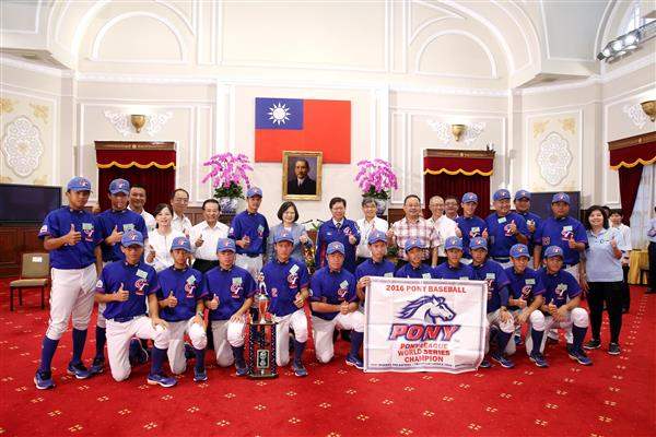 蔡英文總統今(24)日上午接見2016年「世界少棒聯盟(LLB)世界青棒錦標賽」、「第34屆世界少年軟式棒球錦標賽」、「美國小馬聯盟野馬級世界少棒錦標賽」、「美國小馬聯盟小馬級世界青少棒錦標賽」及「世界少棒聯盟世界次青少棒錦標賽」我國冠軍隊伍,除表達賀意,並鼓勵選手們把在球場上的拚戰精神,用在每一個領域的學習上,同時兼顧學業與球技的發展。