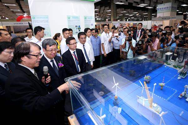 隨後,副總統與現場貴賓一同舉行開幕儀式,並參觀「德國館」、「荷蘭館」、「英國館」及經濟部能源局等主題館,瞭解風力發電產業的發展現況與趨勢。