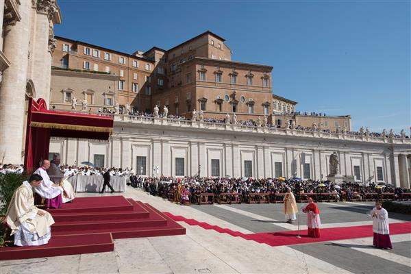 陳副總統伉儷續由禮官引導,入座特使團貴賓席第一排。副總統伉儷兩旁分為奈及利亞及聖馬利諾兩國特使及西班牙前王后索菲亞(Sofía Margarita Victoria Federica),典禮會場另有馬其頓總統Gjorge Ivanov、阿爾及利亞總統布特佛利卡(Abdelaziz Bouteflika)、印度外交部長史瓦拉杰(Sushma Swaraj)等十餘國特使團代表出席封聖典禮。教廷各部會重要樞機主教、總主教及神職人員、各國駐梵使節及外交人員均應邀出席。現場約有十萬名來自世界各地參加封聖彌撒教友,將聖伯多祿大殿廣場及前方諧和大道擠得水洩不通。