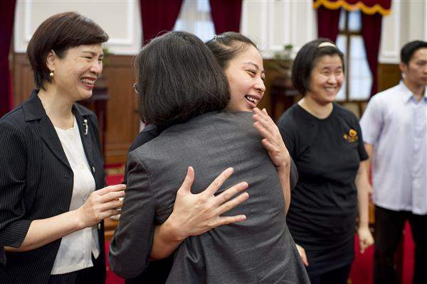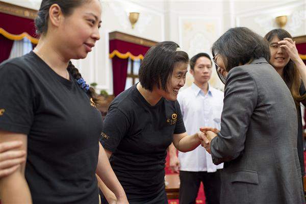 蔡英文總統今(5)日接見「蝦米視障人聲樂團」,肯定渠等實現夢想的勇氣,在國際舞臺上發光發熱,讓世界看見臺灣。