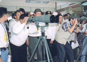 陳總統水扁先生今天上午應邀參加第三屆關渡國際賞鳥博覽會開幕式及自然中心揭幕,也以望遠鏡觀察淡水濕地的生態景觀並致詞。