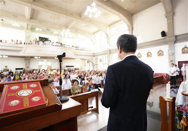 副總統以英語致詞時表示,今日與會者大多是菲律賓教友,也有印尼、泰國及越南教友,同時也有來自中壢、桃園地區大學的外籍學生。