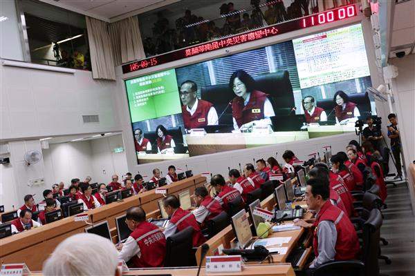 為瞭解莫蘭蒂颱風造成之災情,蔡英文總統今(15)日上午前往中央災害應變中心視察,瞭解目前各地災情及各相關單位應變情形。