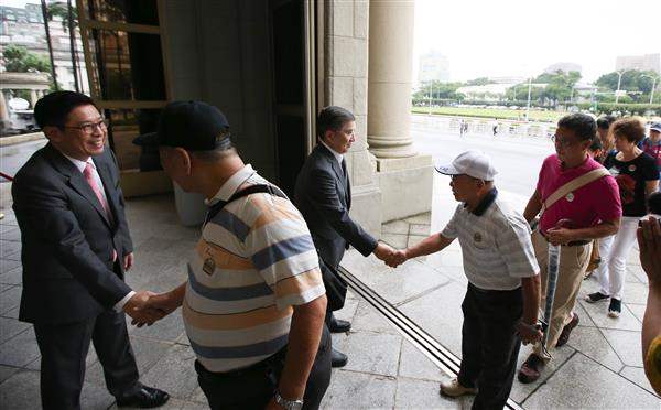 今(18)日是古蹟日,總統府一樓展場在重新布展後,於上午重新對外開放民眾參觀,並由總統府秘書長林碧炤於大門口迎接一早來到總統府參訪的民眾。