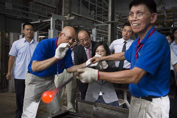 蔡英文總統今(19)日下午參訪新竹市「春池綠能玻璃觀光工廠」,除肯定該工廠致力「廢玻璃回收再利用」工作,並說明政府將在傳統產業中找出創新元素,讓傳統產業變成先進產業及提升產品競爭力。