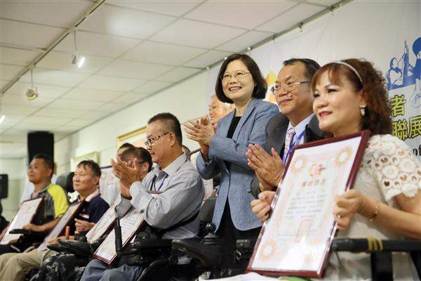 總統也提到,在該協會與陳理事長的努力之下,整合了政府及民間資源,使「身心障礙者藝術巔峰創作聯展」迄今邁入第13年。每次展覽都能提供給身心障礙朋友一展長才的機會,也讓社會大眾有更多機會接觸並幫助身心障礙朋友。