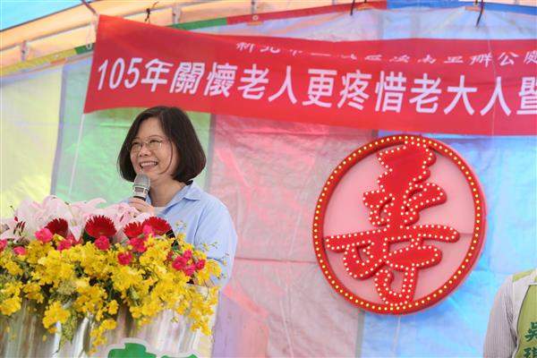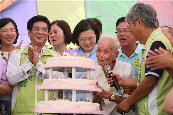蔡英文總統今(1)日午間前往新北市出席「三峽百歲人瑞林老先生敬老餐會」。