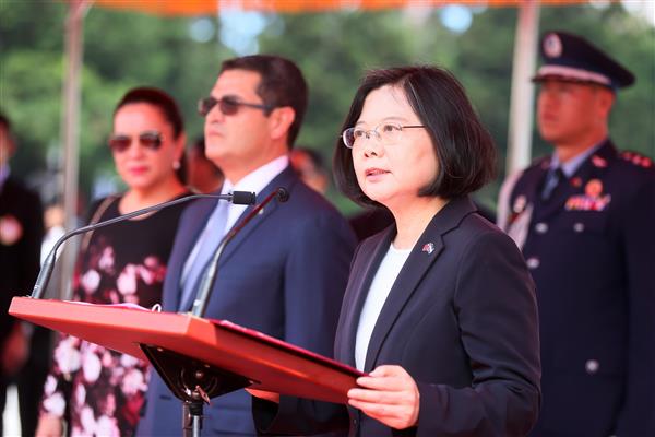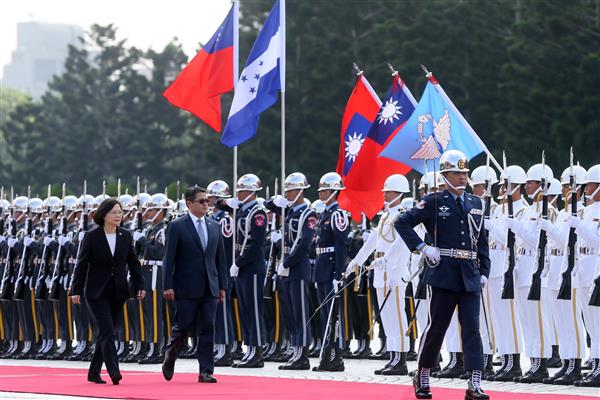 蔡英文總統偕同陳建仁副總統伉儷今(3)日上午以隆重軍禮歡迎宏都拉斯共和國總統葉南德茲(Juan Orlando Hernandez)伉儷訪華,並盼持續深化兩國邦誼與合作關係。