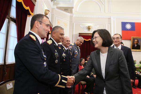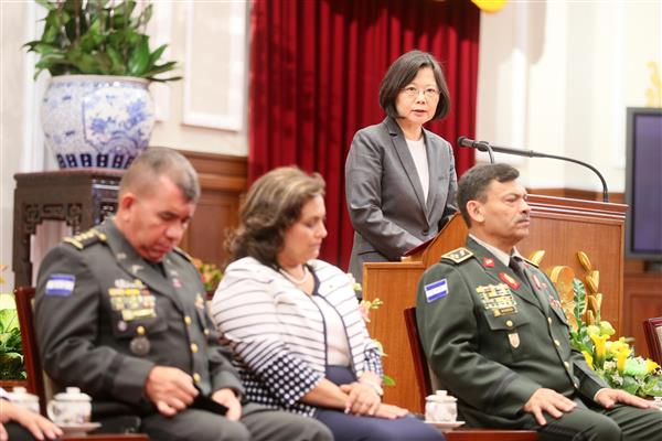 總統也提及,友誼的交流當然也是有來有往,前幾天她也以軍禮隆重歡迎宏都拉斯總統葉南德茲(Juan Orlando Hernández)來臺訪問。來臺受訓3週的各國學員也同樣是我們重要的朋友。「國際高階將領班」過去有特定的歷史背景,不過在今天,已經轉變成臺灣與其他國家互相交流的重要管道。
