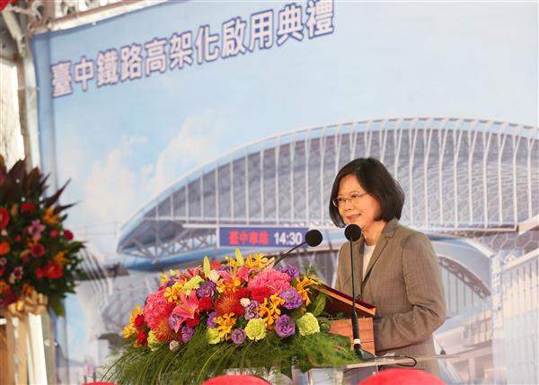 蔡英文總統今(16)日上午前往臺鐵臺中車站出席「臺中鐵路高架化」啟用典禮,期勉新的高架化鐵路運輸為臺中舊城區帶來新生的機會,為臺中市帶來新的發展面貌。
