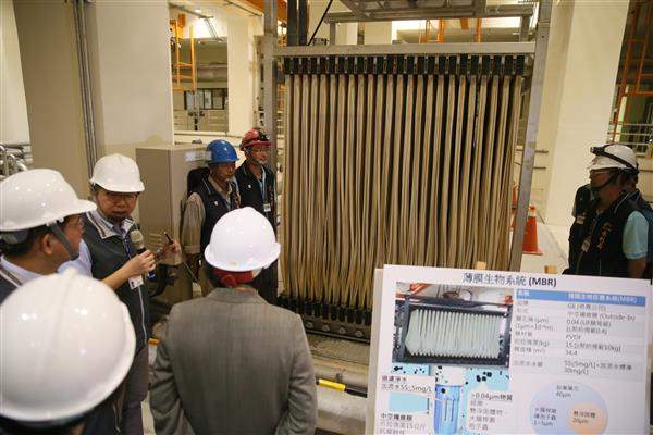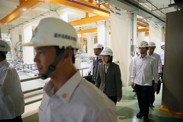 隨後,總統轉往「水湳水資源回收中心」視察。總統抵達後首先聽取臺中市政府水利局局長周廷彰簡報該中心的中水道系統及再生水計劃,瞭解大臺中水資源概況,以及市政府因應氣候變遷、開發多元水源的措施。總統並在林佳龍市長及林陵三副市長陪同下,參觀水資源回收中心的膜濾池,瞭解薄膜生物處理系統的具體效益。